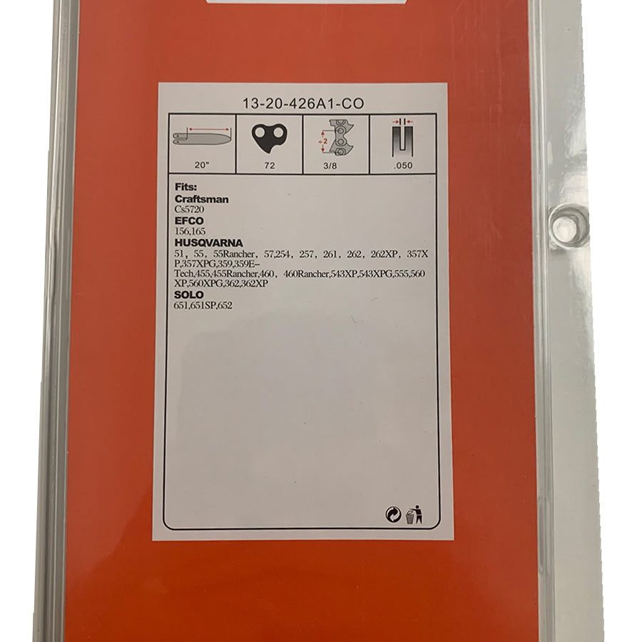 Fit Most Husqvarna using 20” bars with the chain specification mentioned. This blade has 72 steel links at a gauge of .050. This item fits many Husqvarna chainsaws, including many E-Tech, Anniversary, Rancher, Auto Tune, Jungle, and L Series saws. Also fit Homelite Super XL and Super EZ with 20” bars. It will also fit some Stihl models with the 20” bars and the chain specifications mentioned above for 72 Drive Links.